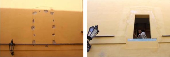 Díky poloze v úzké ulici s orientací východ–západ a vyššími okolními domy se nepředpokládá ani v případě celoskleněného objektu jeho přehřívání. Návrh počítá s úpravou otvorů pro potřeby průchodů, tj. vybourání vyzdívek a parapetu, případné rozšíření otvoru okna a začistění ostění se zachováním co největšího množství původních prvků fasád.