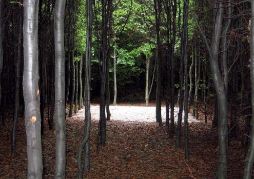 Prvky land-artu vytvárané návštevníkmi lesa vo švédskom